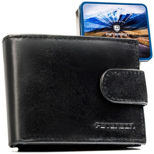 Skórzany, czarny portfel męski zamykany na zatrzask – Peterson