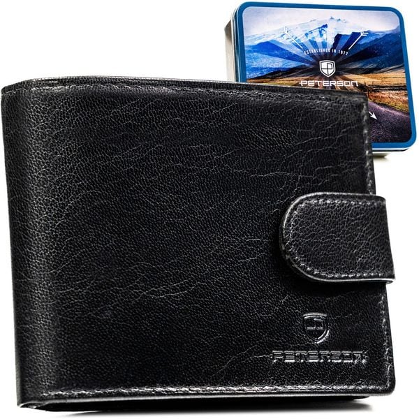 Poziomy portfel męski ze skóry naturalnej w czarnym kolorze w zestawie z brelokiem – Peterson