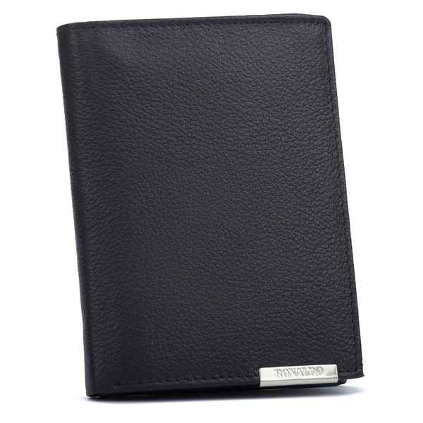 Portfel męski wykonany ze skóry naturalnej w czarnym kolorze. Model w orientacji pionowej bez zapięcia. Wyposażony w system RFID. Portfel mieści dowód rejestracyjny.