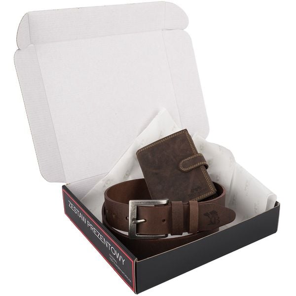 Zestaw prezentowy męski skórzany pasek portfel pudełko premium Beltimore Z54