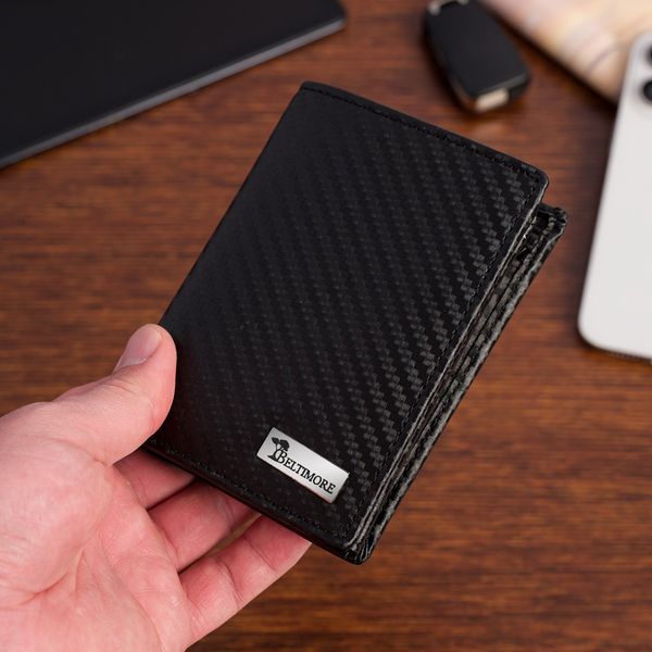 Męski portfel skórzany pionowy klasyczny RFiD duży czarny carbon premium Beltimore P03