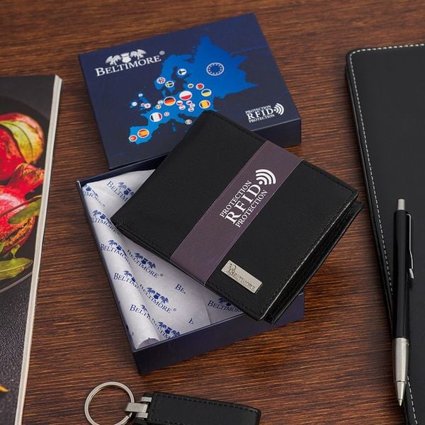 Męski portfel skórzany klasyczny duży poziomy czarny skóra nat Beltimore P09