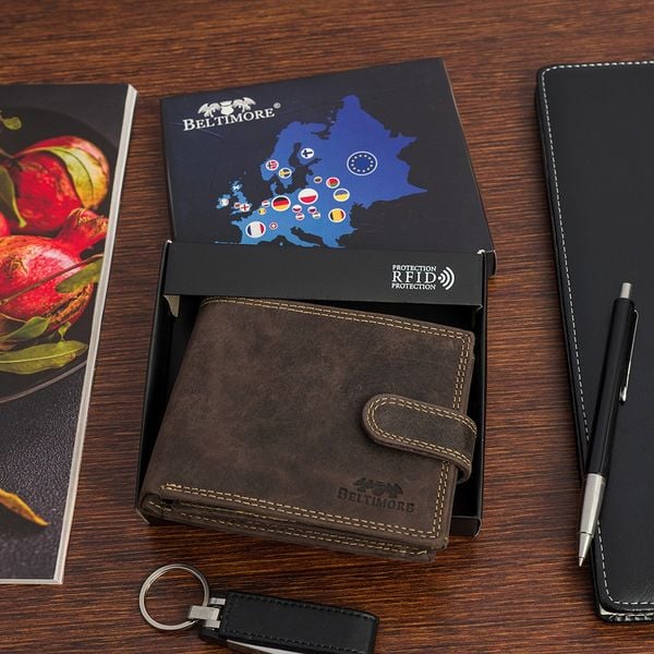Portfel skórzany męski vintage poziomy klasyczny brązowy RFiD Beltimore S50