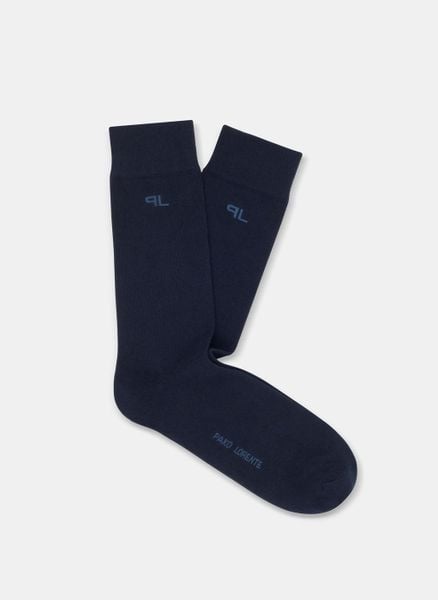 Gładkie granatowe skarpetki męskie z subtelnym logo P000B-SX-060-G