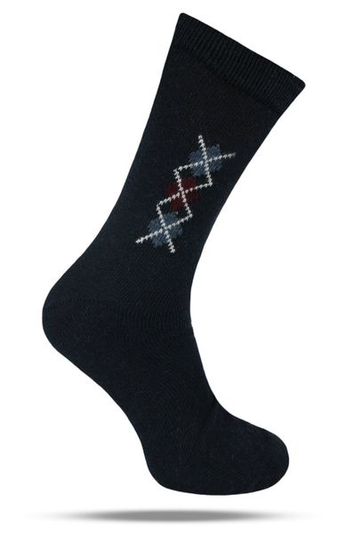 Ciepłe Wełniane Skarpetki Zimowe – Granat, Wzór Geometryczny