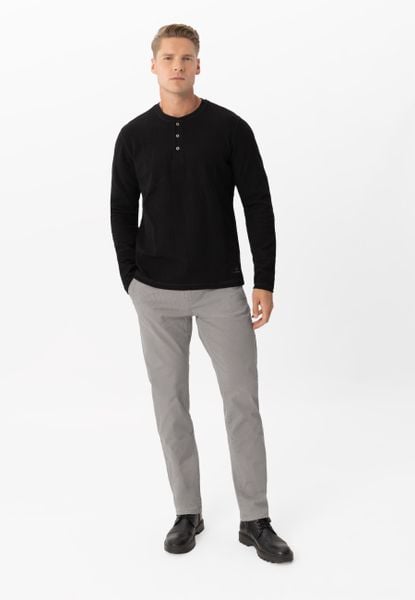 Cechy produktu: elastyczny materiał krój: Regular Fit zapięcie: zamek, guzik dwie skośne kieszenie z przodu dwie kieszenie na ukryty guzik z tyłu materiał w drobny wzór szlufki na pasek detal Volcano Bawełniane spodnie męskieStylowe męskie spodnie R-MATEO, wykonane z bawełny z dodatkiem elastanu to idealne połączenie komfortu i elegancji. Materiał w drobny, geometryczny wzór dodaje […]
