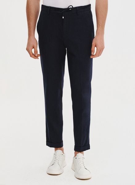 PAKO LORENTE – Granatowe spodnie męskie z lnem