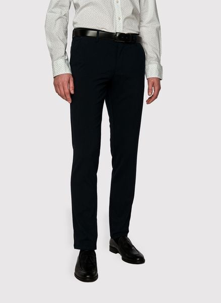 Męskie basicowe spodnie w kolorze granatowym – Pako Lorente. Gładkie męskie spodnie w kolorze granatowym. Długie spodnie z kieszeniami. Skład: bawełna i elastan.