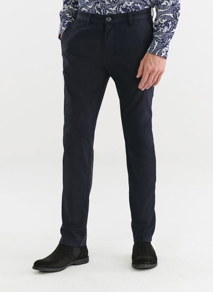 Granatowe spodnie męskie – Pako Lorente. Męskie, gładkie, długie spodnie w kolorze granatowym. Spodnie z lekko dopasowaną nogawką. Skład: 98% bawełna 2% elastan
