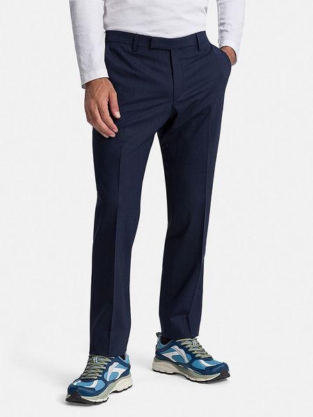 – z dodatkiem wełny- wysokość pasa: regular waist- fason: regular fit- zapięcie: haftka, guzik i zamek błyskawiczny- szlufki na pasek: tak- kieszenie: wpuszczane i tylne- detale: kant- wzór: kratka