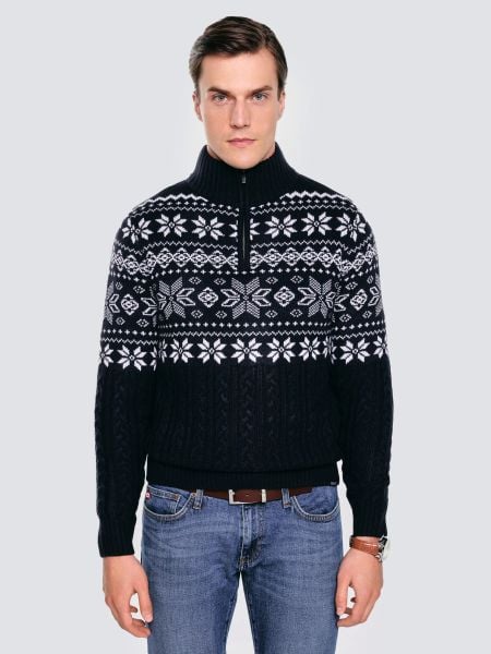 Sweter męski ze skandynawskim wzorem granatowy Kevino 403