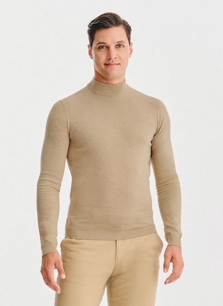 Beżowy półgolf męski – Pako Lorente. Sweter o gładkim splocie. Skład: 70% wiskoza, 30% nylon.