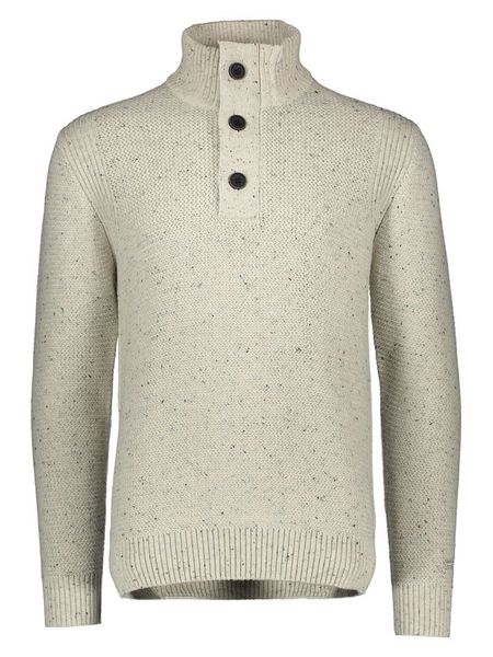 Męski prążkowany sweter z guzikami przy dekolcie - beżowy V3 - Rozmiar: XL