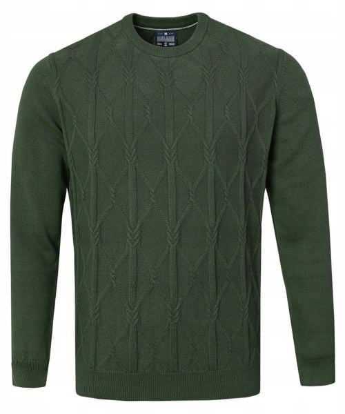 Bawełniany Sweter Męski – Pako Jeans – Warkoczowy Splot – Zgniła Zieleń