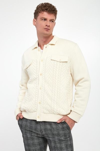 Lekki (Przejściowy) Sweter Męski z Bawełnianej Dzianiny - Pako Jeans - Ecru