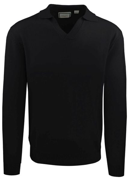 Męski, Lekki Sweter z Otwartym Kołnierzykiem Polo – Brave Soul – Czarny