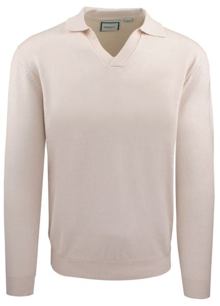 Męski, Lekki Sweter z Otwartym Kołnierzykiem Polo – Brave Soul – Kremowy