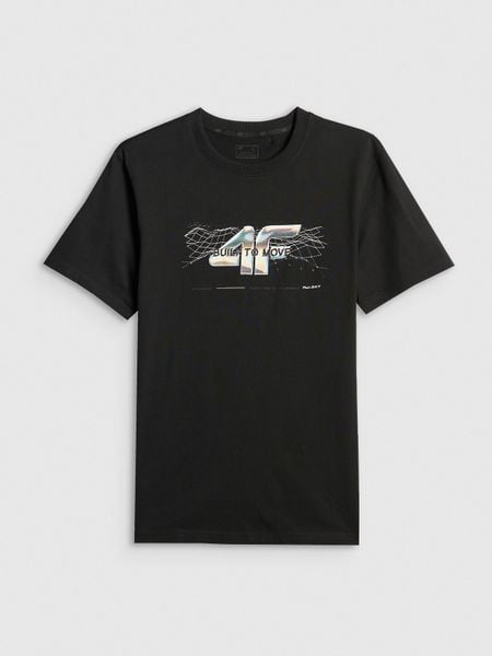 4F T-shirt regular z nadrukiem męski – czarny M