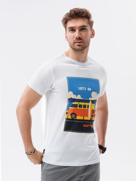 T-shirt męski z nadrukiem – biały V8A – Rozmiar: XL