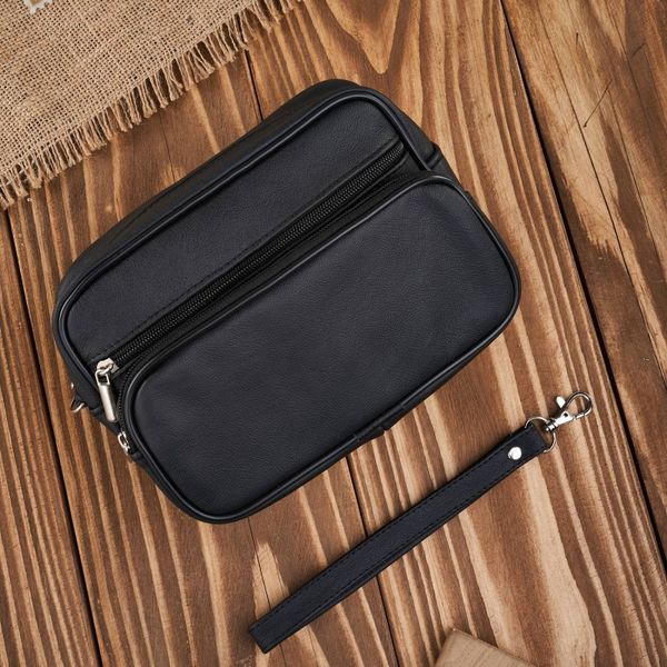 Saszetka męska skórzana do ręki klasyczna czarna mała Abruzzo ABR-09