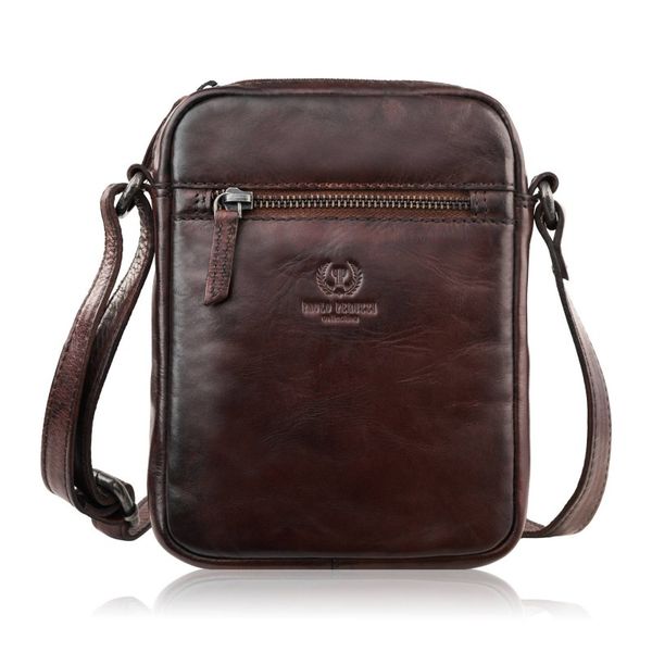 Saszetka męska skórzana na ramię klasyczna brązowa mała funkcjonalna Paolo Peruzzi SL-03-BR